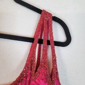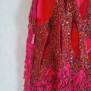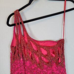 Scala Womens Beaded Silk One Shoulder Cut Out Maxi Dress Gown Size Small Pink