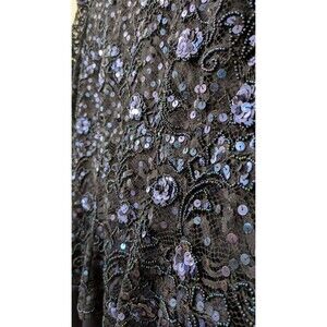 Scala Womens Gown Size 10 Formal Navy Blue Beaded Sequin Event Wedding Lace Mesh