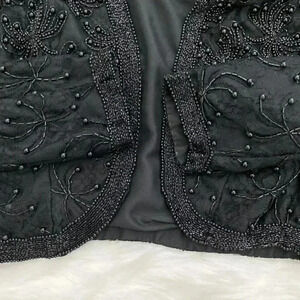 Scala Womens Medium Vintage Lace Beaded Floral Open Jacket Black Beaded