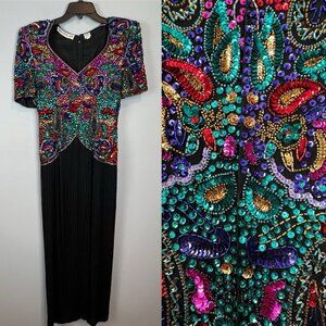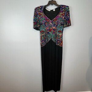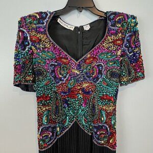 Scala Womens Sequin Dress Size Small Colorful Vtg Short Sleeve Evening Gown