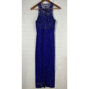 Scala Womens Silk Beaded Dress size Medium Blue Long Dress