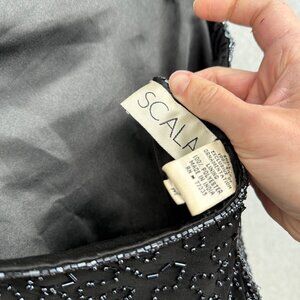Scala Womens VTG Silk Gown Dress Size M Black Beaded High Neck Elegant Formal