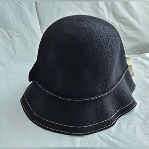 Scala Wool Mink Cloche Hat Flower Applique Round Ruffle Edge Handcrafted NWT