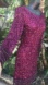 This is a beautiful deep magenta color almost a purple. The main area of the dress is covered in magenta sequins. The dress is lined but the sleeves are sheer. That beaded hem on both the sleeves and the bottom of the dress also has a heavier purple beading in addition to the sequins and there are some larger beads that flash and iridescent blue green also. Beautiful piece in excellentCondition there is half a roll of beating missing on the very tip of one sleeve see photo
