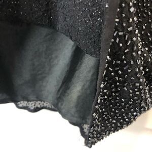Scala 100% silk black beaded tank top has rounded collar and sheer beaded overlay. Pit to pit 18in, length 21in, size medium. A few loose beads but still in very good conditionšš