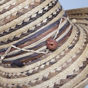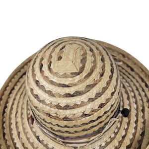 Scala Collection Womens Woven Straw Sun Hat Chevron Beaded Wide Brim Tan Brown