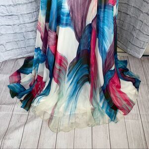 Scala strapless brush print multicolor maxi dress sz 4