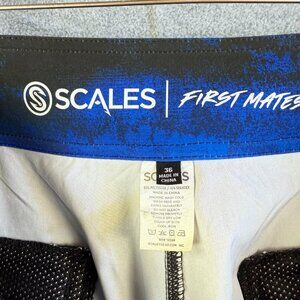 Scales First Mates Blue‑Black Hybrid Stretch Boardshorts – 36 Waist