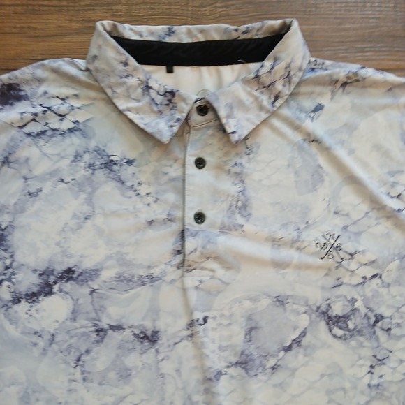 Scales Polo Mens XXL 2XL White AOP Golf Performance Stretch Flex Golf Club Logo