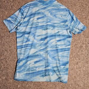 Scales Polo Shirt Mens XL Blue Water Print Performance Golf Fishing Lightweight