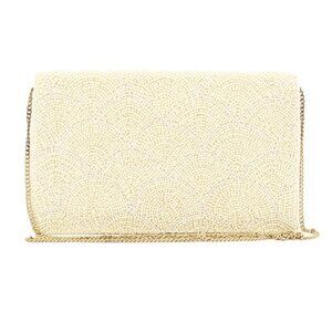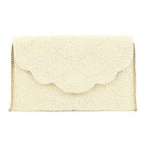 Scallop Cut Beaded Clutch / Crossbody Bag in Ivory with Gold Chain NEW NWT