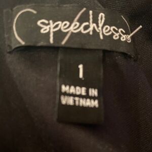 NWOT You'll turn heads in this sophisticated fit-and-flare dress. The unique scalloped neckline adds a touch of drama while the high-low satin skirt will billow with every twirl across the dance floor. Juniors Size 1