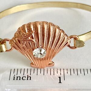 Scallop Sea Shell Bracelet Bangle Nautical Island Beach 7.5" Gold Plated Crystal
