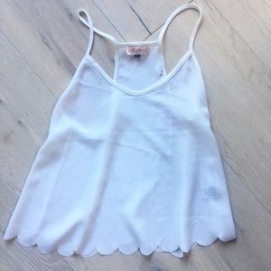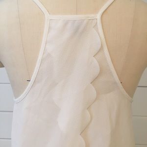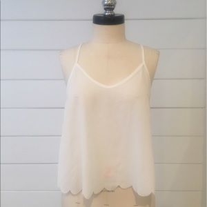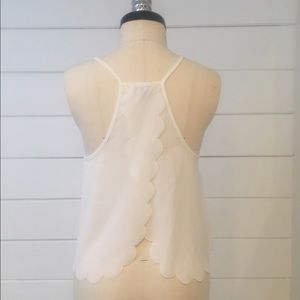 Adorable cami. Light weight with scalloped edge, open back. Size: Small. Never worn!