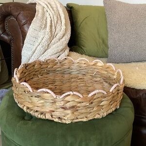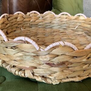 Scalloped Edge Round Decorative Serving Trays with Built-in Handles for Coffee Table, Natural Water Hyacinth Rattan Woven Tray.