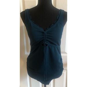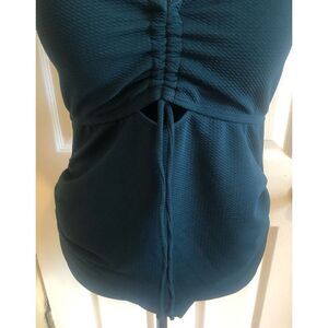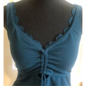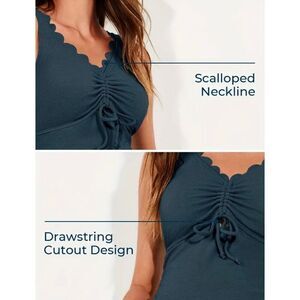Dive into style with this elegant one-piece swimsuit featuring a scalloped neckline and drawstring cutout design. Perfect for a chic beach look.