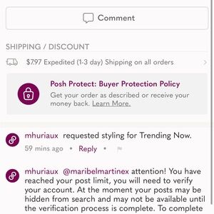 Since I been on this app for less then a week I have had several and I mean several users try to scam me asking for my personal information saying they have to verify to proceed with buy! I reached out to Poshmark and they do not ask for any verification! Do not ask me to email pics! Do not ask for my information! I will report each account that does ! Get a real job and quit trying to scam! Damn clowns