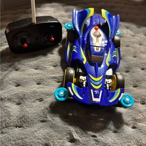 Experience high-speed fun with this blue remote control race car. Perfect for young racing enthusiasts, this toy features vibrant blue and yellow colors for an exciting look.