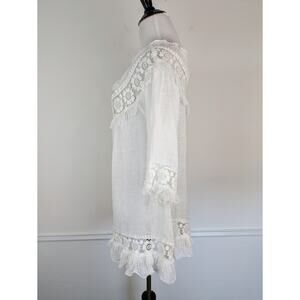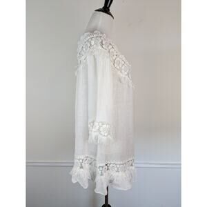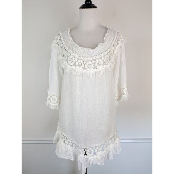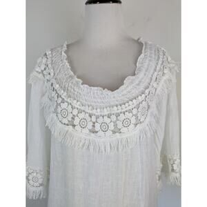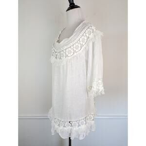 Scandal Italy Blouse Top Linen Embroidered Lace Gauzy Boho Summer White Size M