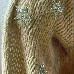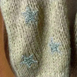 Scandal Italy Open Front Loose Knit Cardigan Sweater With Six Beautiful Metallic And Rhinestone Stars Scattered On The Front