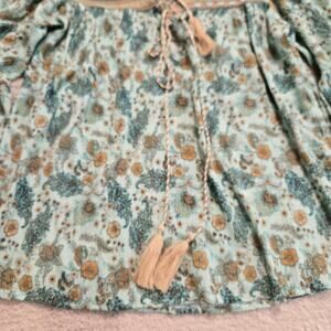 Scandal Italy Floral Print Boho Top Blouse Tasseled Front Size M Bohemian