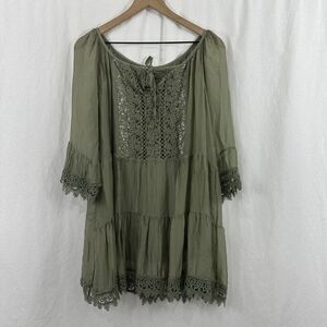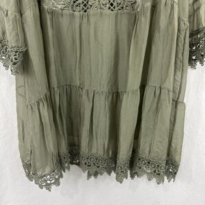 Scandal Italy Juliet Green Silk Blend Crochet Lace Flowy Tie Neck Top Womens O/S