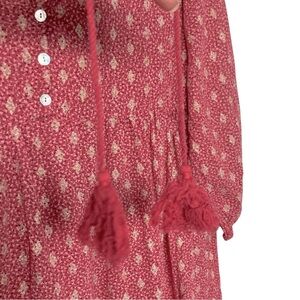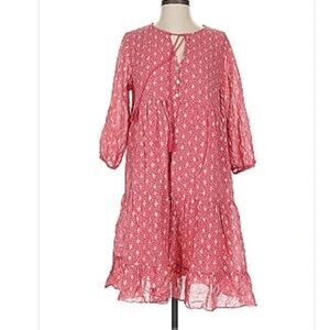 Scandal Italy Ordell Boho Lurex Diamond Print Tiered Ruffle Mini Dress Long Sleeve M Pink
