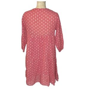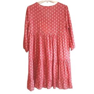 Scandal Italy Ordell Lurex Diamond Print Tiered Boho Mini Dress Long SL M Pink