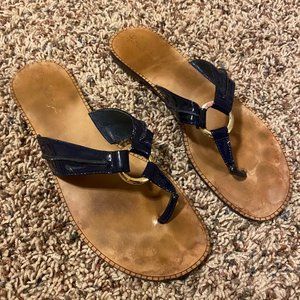 Navy Lily Pulitzer scandals with gold ring. Good condition.