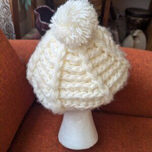 Scandi Girl Fiddler Newsboy Pageboy Knit Hat Cadet Brim Pom Pom Boho Vintage