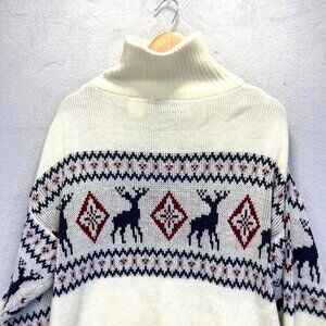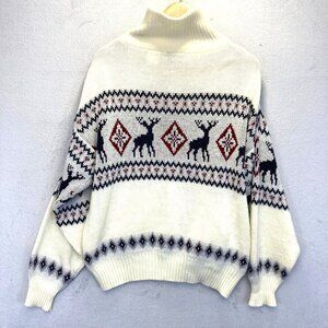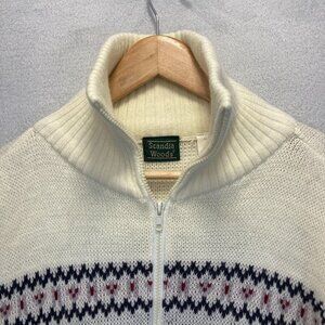 Scandia Woods Full Zip Cardigan Sweater Mens Large L Nordic Deer Knit White VTG