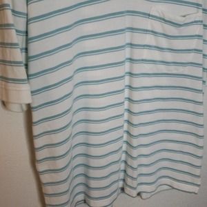 Scandia Woods Short Sleeve Pocket Polo Shirt Mens XLT Tall White Blue Striped