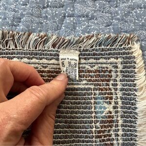 Scandinavian Children Vintage Tapestry w/ Blue & Cream Linen & Cotton Blend 13”