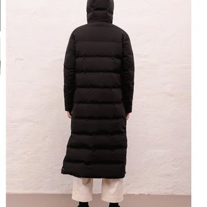 A long and elegant coat with a slim silhouette, filled with 90/10 RDS certified down for a perfect puffed feeling, look, and warmth. The outer fabric is wind- and waterproof. The length of Meridian will help stop cold air from seeping up and underneath the jacket. The split in the sides with press buttons and a 2-way front zipper can be utilized for increased movability. Meridian is exceptionally lightweight for its length – weighing 1080 grams in size Small.