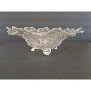 Scandinavian Ice Clear Cabbage Leaf Glass 4 Footed Serving Bowl