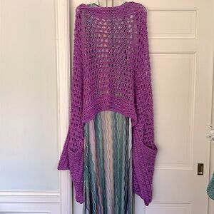 Artisan Corner - Free People features artisan hand crafted fashion. What makes this the best ever crochet fashion is the midi maxi length with the slouchy pockets and cool Scandinavian yarn which makes this the best ever ! One of a kind cool 😎☮️✌️ #festival #boho #purple #handcrafted #artisan #corner #louisiana #perfect #boho #slouchy #pocket #shawl