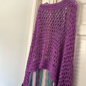 Scandinavian Violet Purple Euro Wrap Open Knit Slouchy Pocket Artisan Corner NEW