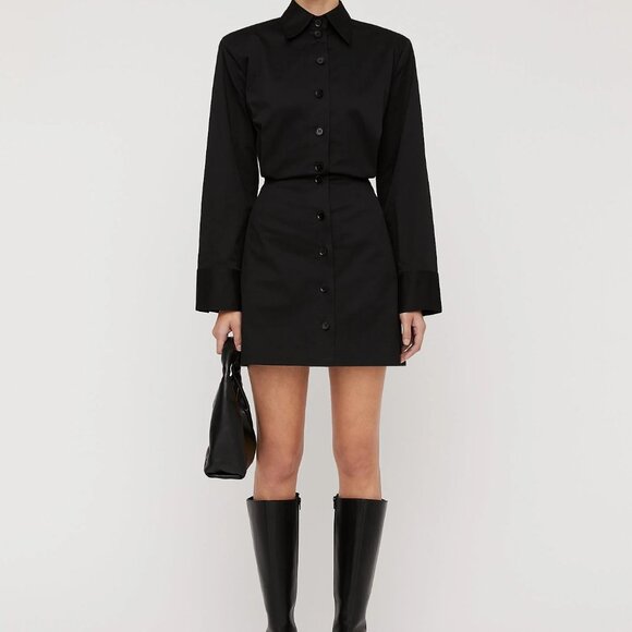 Scanlan Theodore Black Sateen Shirt Dress "The Prada of Australia" BNWT US 4