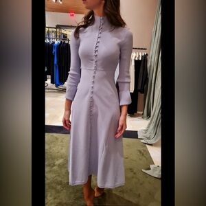 Chic long sleeve dress in lilac. Features button-down front. Perfect for elegant occasions.