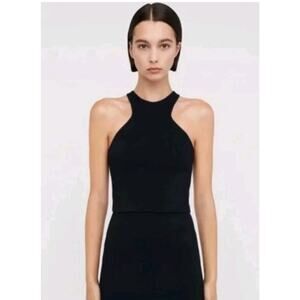 Scanlan Theodore Crepe Knit Racerbank Tank Top Cami in NAVY