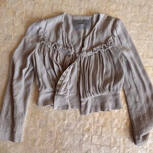 Scanlan Theodore Draped Jacket long sleeve top grey gray hook-and-eye ruffles XS
