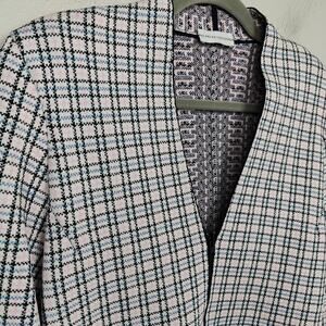 Scanlan Theodore Houndstooth Knit Blazer Womens Large White Blue Black Pastel Pink ZIp Up Preppy