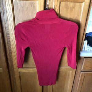 Features: Scoop neck with pull through neck tie accent, soft lightweight solid red ribbed crepe knit viscose blend fabric, pullover