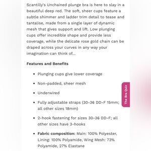 Scantilly unchained sheer plunge bra in deep red size 34FF 34H