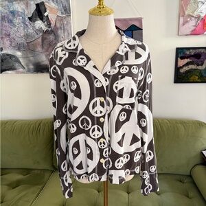 Scanty Y2K Vintage Peace Sign Button Down Shirt in Brown and White - Women’s L