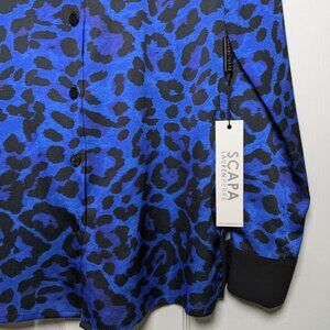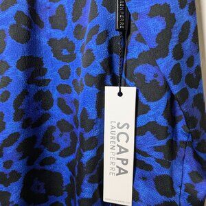 Scapa Lauren Perre Duchessa XS Royal Blue Black Animal Print Shirt NWT