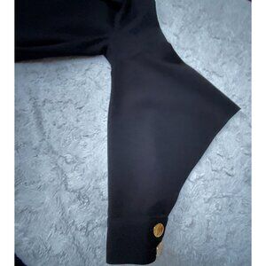 Style/Features: Round Neck, Long Bell Sleeve with gold button accent