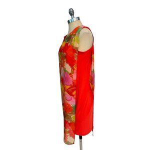 Scapa Lauren Perre sleeveless orange floral print Dress Medium