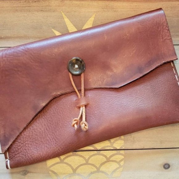 ScapeGrace Designs Brown Natural Edge Leather Clutch Beautiful textured leather clutch. 11.5" x 7". Full-grain leather has character all its own which often displays natural markings lending unique beauty to the leather piece.