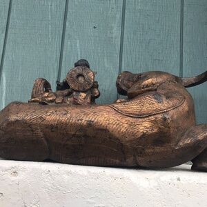 Scarce Original Antique 1930/40’s Chinese Wood Lucky Fengshui Statue Figurine water Buffalo Bull recovered from an abandon Vanderbilt Newport RI Mansion in the early 1960's..